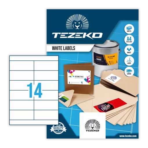 105 mm x 42.3 mm Papierové Samolepiace etikety A4 Tezeko Biela ( 100 hárkov/balenie )