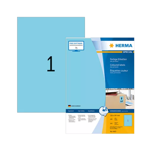 210 mm x 297 mm Papier Samolepiace etikety A4 Herma Modrá ( 100 hárkov/balenie )