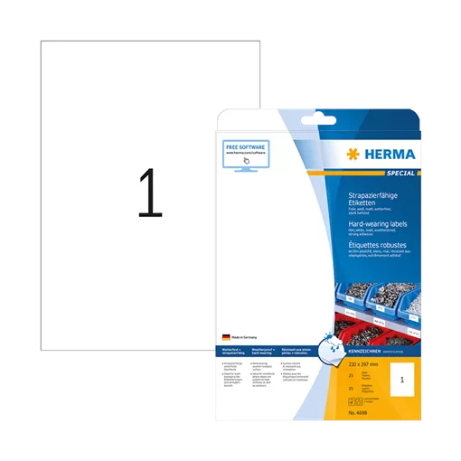 210 mm x 297 mm Syntetické Samolepiace etikety A4 Herma Biela ( 25 hárkov/balenie )