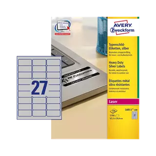 63.5 mm x 29.6 mm Syntetické Samolepiace etikety A4 Avery Zweckform Strieborná ( 100 hárkov/balenie )