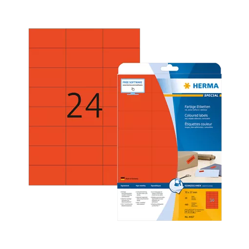 70 mm x 37 mm Papierové Samolepiace etikety A4 Herma Červená ( 20 hárkov/balenie )