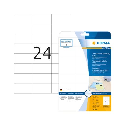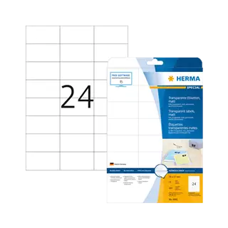 70 mm x 37 mm Syntetické Samolepiace etikety A4 Herma Priehľadná (čistá voda) ( 25 hárkov/balenie )