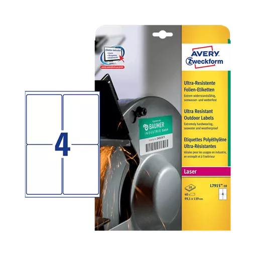 99.1 mm x 139 mm Plast Samolepiace etikety A4 Avery Zweckform Biela ( 10 hárkov/balenie )