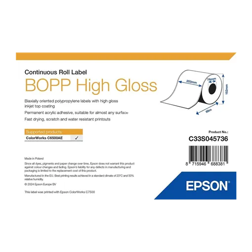 Farba: Biela • Vonkajší priemer cievky: 152 mm • Šírka etikety: 203 mm • Dĺžka kotúča: 68 m • Plast • Pre všeobecné použitie