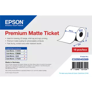 80 mm Papierové Kontinuálny spotrebný materiál Epson Biela ( 50 m )