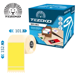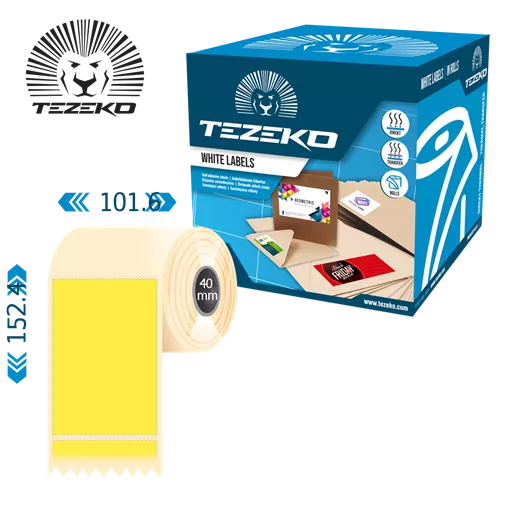 Šírka etikety: 101.6 mm • Výška etikety: 152.4 mm • Materiál etikety: Papier • Vnútorný priemer cievky: 40 mm • Typ lepidla: Štandardná • Farba: Žltá