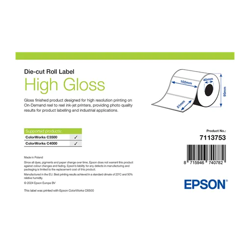 Šírka etikety: 102 mm • Výška etikety: 51 mm • Materiál etikety: Papier • Vnútorný priemer cievky: 40 mm • Typ lepidla: Štandardná • Farba: Biela