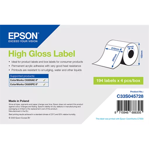 Šírka etikety: 210 mm • Výška etikety: 297 mm • Materiál etikety: Papier • Vnútorný priemer cievky: 76 mm • Typ lepidla: Štandardná • Farba: Biela