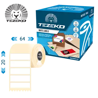 Šírka etikety: 64 mm • Výška etikety: 20 mm • Materiál etikety: Papier • Vnútorný priemer cievky: 40 mm • Typ lepidla: Štandardná • Farba: Biela