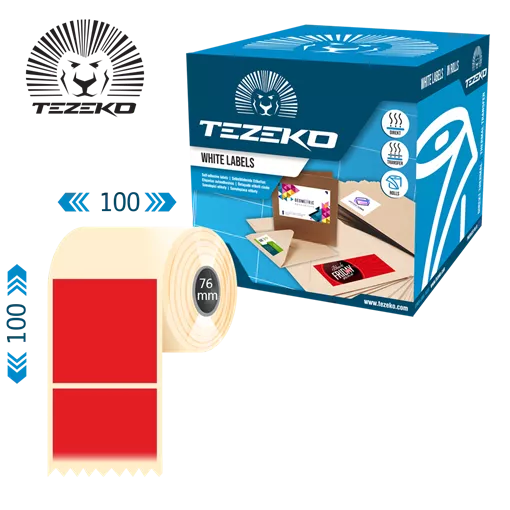 Šírka etikety: 100 mm • Výška etikety: 100 mm • Materiál etikety: Syntetické • Vnútorný priemer cievky: 76 mm • Typ lepidla: Štandardná • Farba: Červená