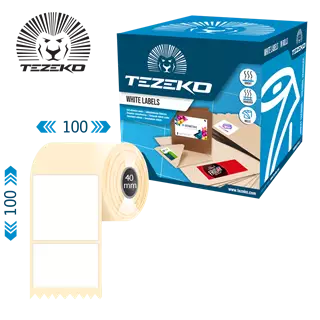 Šírka etikety: 100 mm • Výška etikety: 100 mm • Materiál etikety: Syntetické • Vnútorný priemer cievky: 40 mm • Typ lepidla: Silný • Farba: Biela