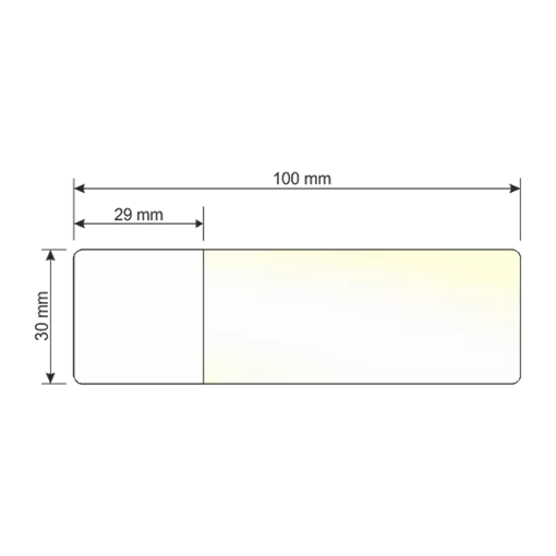 Šírka etikety: 100 mm • Výška etikety: 30 mm • Materiál etikety: Syntetické • Vnútorný priemer cievky: 40 mm • Typ lepidla: Štandardná • Farba: Transparentná