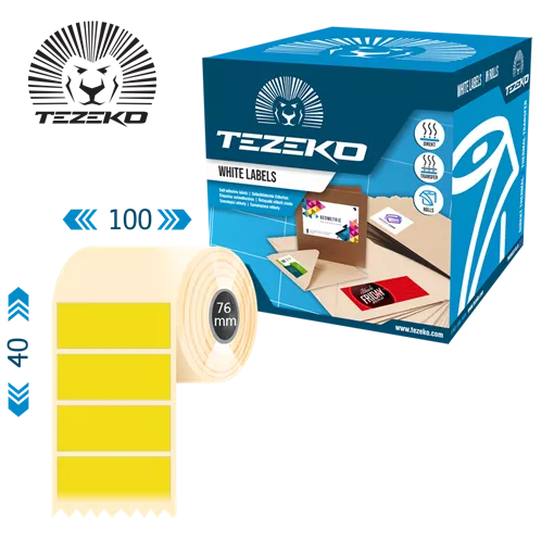 Šírka etikety: 100 mm • Výška etikety: 40 mm • Materiál etikety: Syntetické • Vnútorný priemer cievky: 76 mm • Typ lepidla: Štandardná • Farba: Žltá