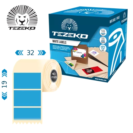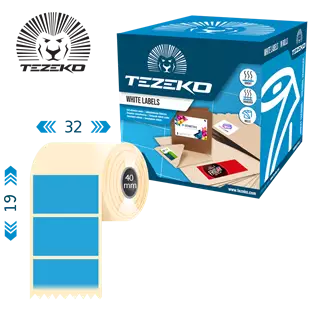 Šírka etikety: 32 mm • Výška etikety: 19 mm • Materiál etikety: Syntetické • Vnútorný priemer cievky: 40 mm • Typ lepidla: Štandardná • Farba: Modrá