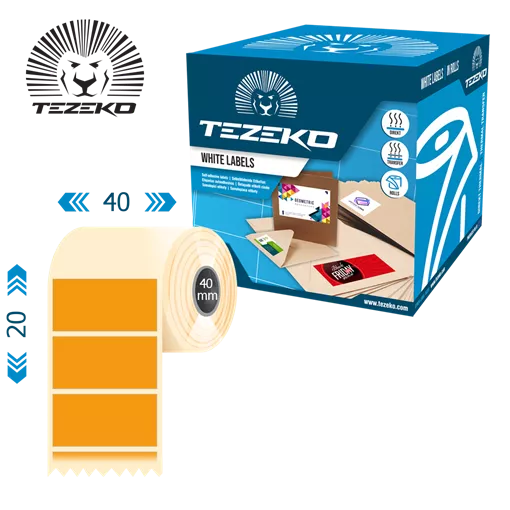 Šírka etikety: 40 mm • Výška etikety: 20 mm • Materiál etikety: Syntetické • Vnútorný priemer cievky: 40 mm • Typ lepidla: Štandardná • Farba: Oranžová