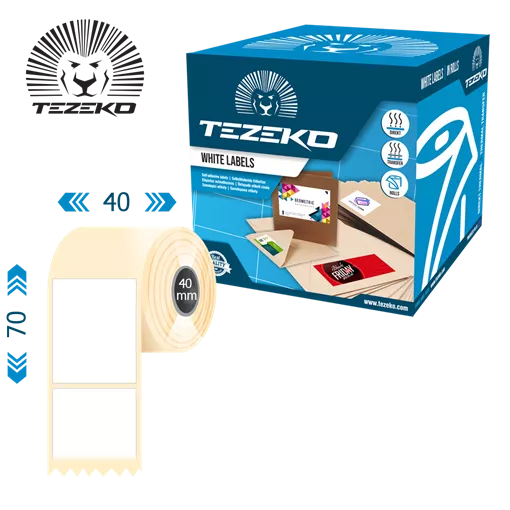 Šírka etikety: 40 mm • Výška etikety: 70 mm • Materiál etikety: Plast • Vnútorný priemer cievky: 40 mm • Typ lepidla: Štandardná • Farba: Biela