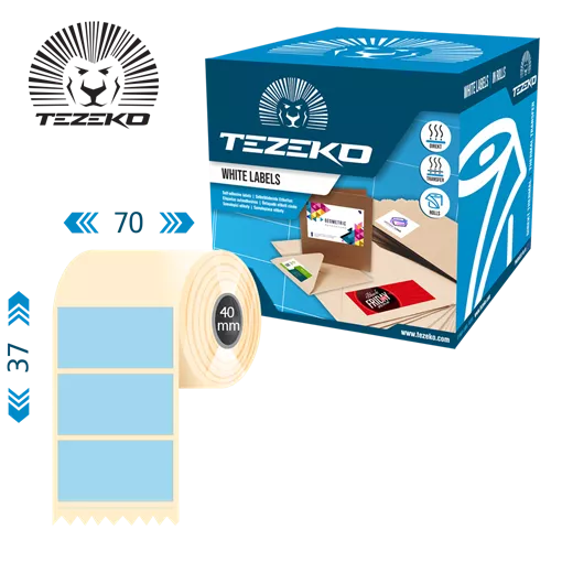 Šírka etikety: 70 mm • Výška etikety: 37 mm • Materiál etikety: Syntetické • Vnútorný priemer cievky: 40 mm • Typ lepidla: Štandardná • Farba: Modrá