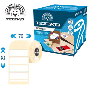 Šírka etikety: 70 mm • Výška etikety: 25 mm • Materiál etikety: Termo • Vnútorný priemer cievky: 76 mm • Typ lepidla: Štandardná • Farba: Biela